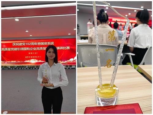 7月19日,我公司團支書陳瑞清同志參加惠陽區國資事務中心舉辦的慶祝建黨102周年暨國資系統“高質量黨建引領國有企業高質量發展”演講比賽,榮獲第一名。