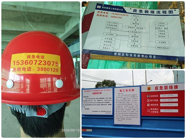 在檢查過程中發(fā)現(xiàn),各施工項目部均有在醒目處張貼應急救援程序圖、項目管理人員及工人都佩戴著有貼應急救援電話的安全帽,以及配備有通過審批的“三防”應急救援預案,使安全生產(chǎn)有保障。